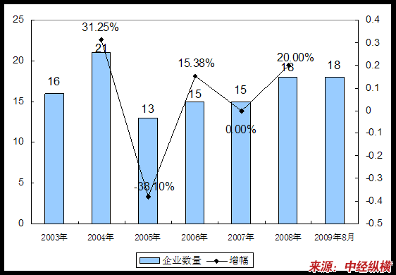 第七节 2003-2009年8月墨水、墨汁制造 行业 企业数量发展状况