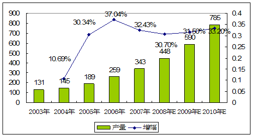 2003-2010年我国铝镁合金产品产量 分析 及预测图