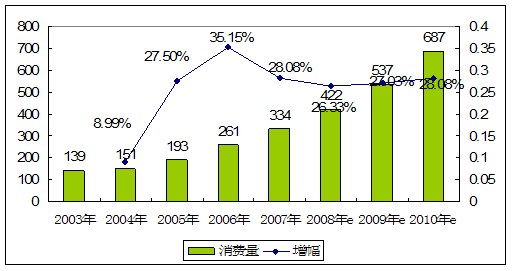 2003-2010年我国铝镁合金消费状况 分析 及预测图