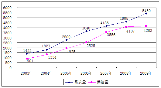 2003-2009年中国全钢子午线轮胎供需平衡对比图