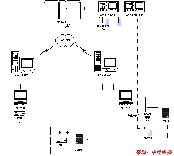 模式三:用于人民银行同城票据清算系统。与模式二类似,客户也需一台签发设备,以便为每张票据产生支付密码。此种模式采用了IC卡,支付密码是用IC卡内的加密算法产生的。加密密钥由IC卡内的固有算法“随机”产生,银行不需要保存客户密钥。