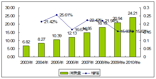 2003—2010年实木百页门产品消费量 分析 及预测图