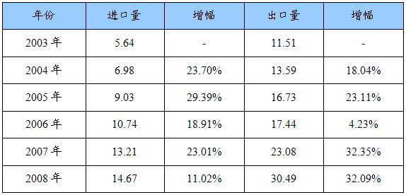 2003-2008年其他未列名的具有独立功能的电气设备进出口量值统计