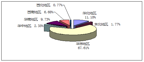 毛毯 行业 生产企业主要集中在我国的华东地区,市场份额占到 行业 的50%以上,尤其在2006年市场份额高达75%左右;而我国的西北地区毛毯企业较少,市场份额很低,只占市场的0.5%左右。可见我国毛毯 行业 生产区域分布不均衡。
