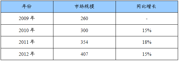 2009-2012年我国婴幼儿奶粉市场规模预测表
