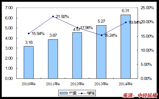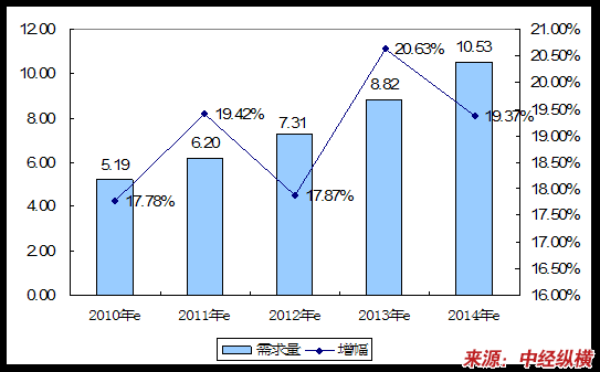 2000年我国架空输电线的用量约60万吨,其中只有数千吨铝合金导线,约占总需求量的1%,这是一个很小的数字。“十五”期间,输电线路以10%地速度增长,2009年架空输电线的年用量为100万吨左右,如果我们把架空输电线中5%的量作为铝合金导线的用量计算的话,也就是至2010年后,我国每年需用铝合金导线的量至少将为5万吨以上,然而目前我国生产铝合金导线产量只有不到3万吨,因此缺口很大。