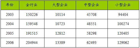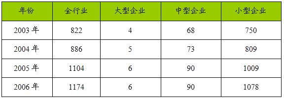 2003年-2006年集装箱及金属包装容器制造业不同规模企业数量 分析