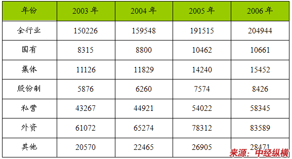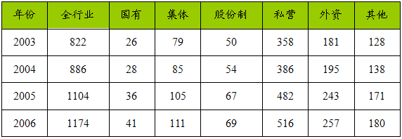 2003年-2006年集装箱及金属包装容器制造业不同有制分企业数量
