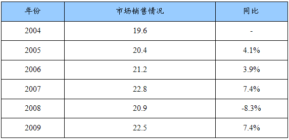 2004-2009年美国折叠式户外休闲椅市场销售情况