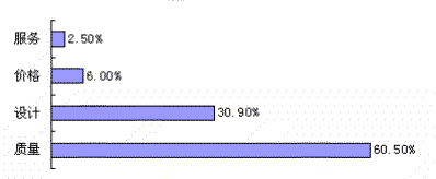家居饰品的质量的关注程度较为强烈,有60.5%的客户最注意装饰质量,毕竟,购买一套房子入住,一旦入住就是十年八年,装饰质量当然十分重要;随着生活质量提高,也有30.9%的客户更注重装饰设计,而关注价格和服务的客户较少。