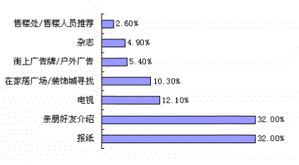 通过报纸和亲朋好友介绍是客户选择品牌的主要途经,这也说明知名度和良好口碑是家装企业赢得客户的主要武器,通过电视广告、在家居广场/装饰城寻找家装企业是客户家装企业的另外两种途经。