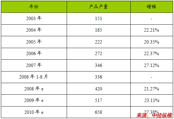 2003—2010年银行电子支付密码器系统产品产量 分析 及预测表
