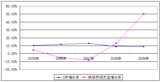 2005-2009年我国GDP与铁路桥梁支座产值对比