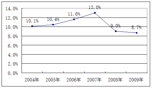 据预测,2010年投资、消费和净出口对GDP增长的拉动分别为:6.3%、4.2%和-0.5%。分季度来看,我国经济增长基本呈前高后低之势,GDP在第一季度为11%左右,第二季度为10.2%左右,第三季度为9.5%左右,第四季度为9.8%左右。