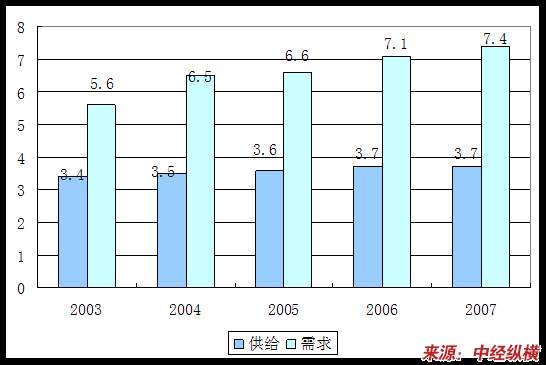 2007年以来,国内油品市场随着我国经济的稳步快速发展,对石油需求构成有力的支撑。2007年中国原油需求量超过3.4亿吨,比上年大约增长7%;资源供给总量超过3.5亿吨,其中国内生产1.86亿吨,大约增长1.6%、进口1.63亿吨,大约增长12.6%。如果再加上新增的储备,2007年原油市场基本实现储备有所增加供需基本平衡。但资源的对外依存度将接近47%,比2006年提高近3个百分点。