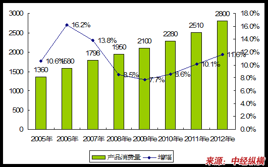 | 年份 | 产品消费量 | 增幅 |