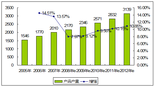 | 年份 | 产品产量 | 增幅 |