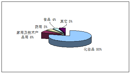 铝质气雾罐是我国金属包装容器的重要组成部分,主要为化工、汽车、油脂、药品及化妆品等 行业 提供包装服务。目前,化妆品包装仍稳居铝制气雾剂罐最大应用市场,占总消费量的80%,其中,除味剂包装占44%,美发摩丝、发胶、剃须膏包装分别占到15%、15%和2%。化妆品包装之外的其它领域,占到铝罐消费的20%,其中,家用及技术产品包装占6%,药品包装占5%,食品包装占4%。