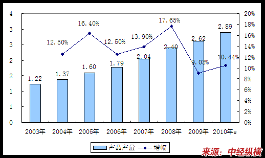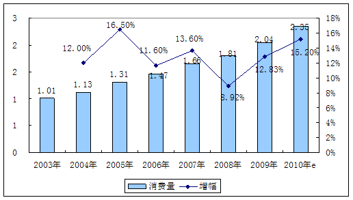 气雾剂 行业 是我国新兴的制造加工产业,从2000年开始进入了快速发展时期。气雾剂 行业 的发展带动了气雾罐产品的生产,气雾罐是我国金属包装容器中发展最为迅速的 行业 之一。铝质气雾罐在我国的气雾罐 行业 中所占比例不高,大约为15%-25%,不过近年来铝质气雾罐产品产量越来越多,在气雾罐 行业 中所占比例也在逐年增加。2003年,我国铝质气雾罐产品产量超过了1亿只,而2007年的年产量已经突破2亿只,连续几年产量增幅都超过了10%。2008年中国铝气雾罐产量约2.4亿只,约占全球总量的4.2%。铝质气雾罐产品在杀虫剂、汽车护理用品、油漆、日化产品等产品包装上的应用比较广泛,适用范围越来越广。铝质气雾罐凭借其自身优势,受到越来越多人的欢迎,市场需求量有了很大提高。预计未来随着各类相关产品的生产发展,铝质气雾罐的市场需求也会越来越旺盛,需求量将会进一步扩大。