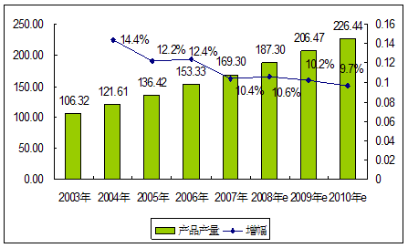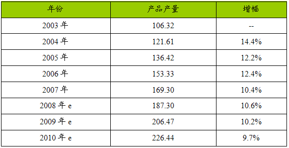 2003—2010年工业氯化钙产品产量 分析 及预测表