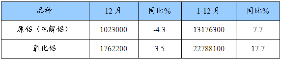 2008年12月以及1-12月我国铝及氧化铝产量一览表