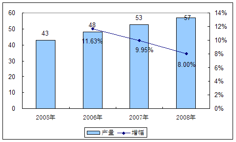 全球铝质气雾罐产量近几年来一直在平稳增加,2005年产量达43亿只,2006年产量达48亿只,而2007年全球铝质气雾罐产量已经超过50亿只。2008年全球气雾剂总产量为131亿罐,其中铝气雾罐57亿罐,占44%。