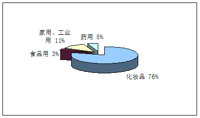 从全球铝质气雾罐市场来看,铝质气雾罐76%被用于化妆品气雾剂,家用、工业用气雾剂所用铝罐占11%,药用气雾罐占5%,食品用气雾罐占3%,其它产品占5%。