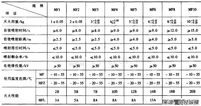 手提式干粉灭火器按充装的干粉药剂量,有1、2、3、4、5、6、8、10kg等8种。其型号有MF1、MF2、MF3、MF4、MF5、MF6、MFS、MFl0。