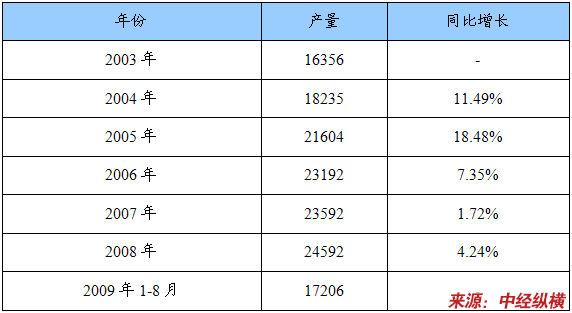 一、2003-2009年产品产量