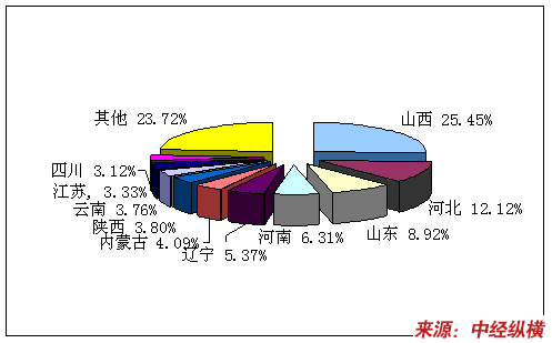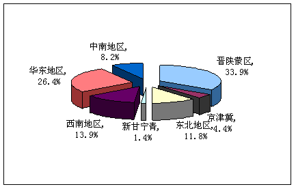 2008年焦煤产品产量地区分布图