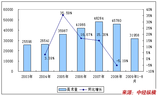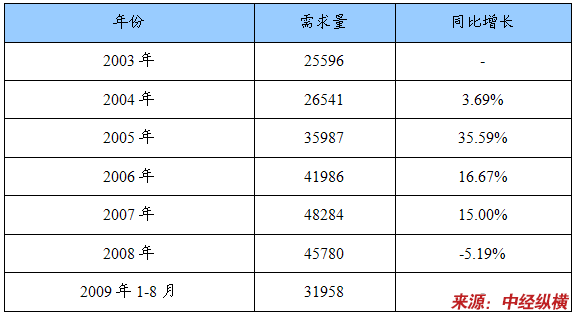 一、2003-2009年市场需求量