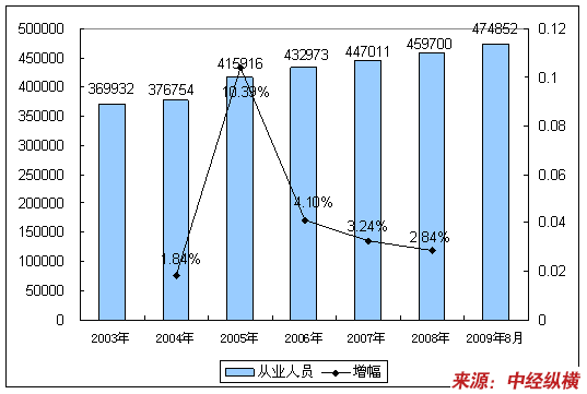 三、2003-2009年8月从业人员情况