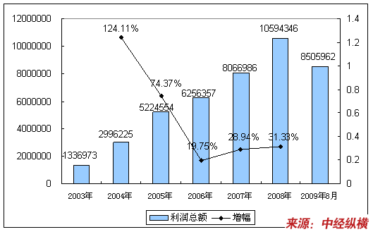 2003-2009年8月 行业 利润总额增长情况