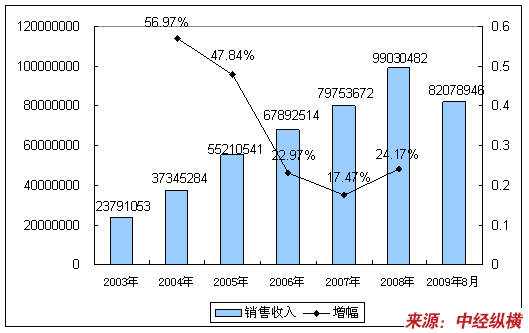 四、2003-2009年8月销售收入情况