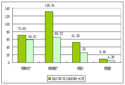 2007—2008年6月硼铁矿及相关硼矿产品产量图