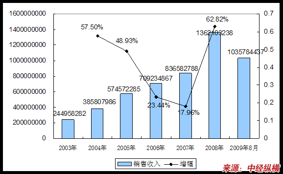 四、2003-2009年8月销售收入情况