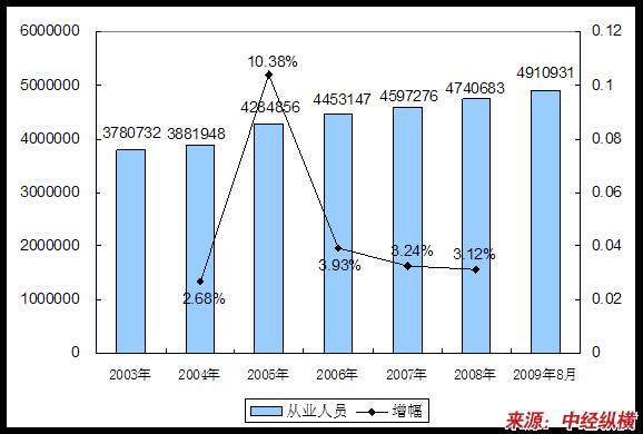 三、2003-2009年8月从业人员情况