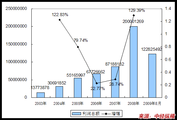 五、2003-2009年8月利润总额情况