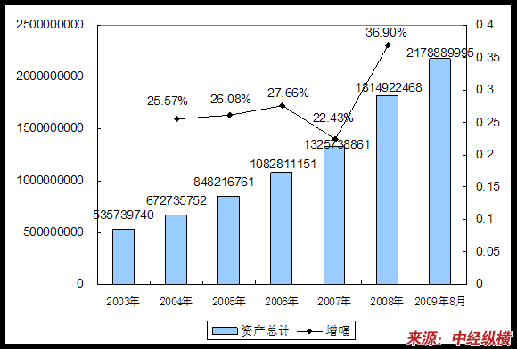 一、2003-2009年8月总资产情况