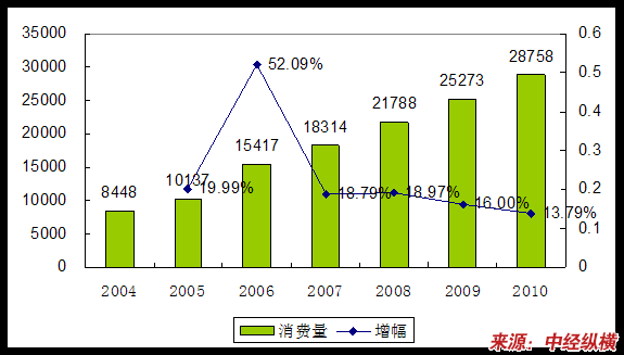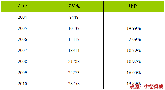 2004—2010年无水氯化镁消费量 分析 及预测表