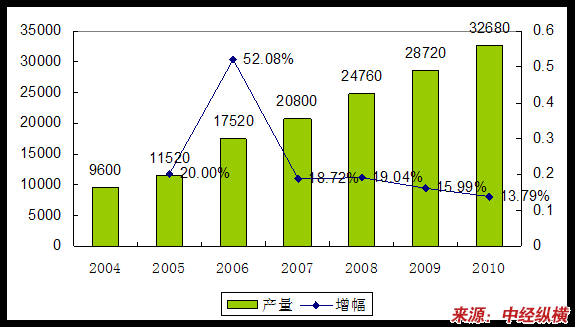 总体来看,2007年之前产量增幅不稳定,2007年之后将呈总量增长、增幅趋缓的发展态势。