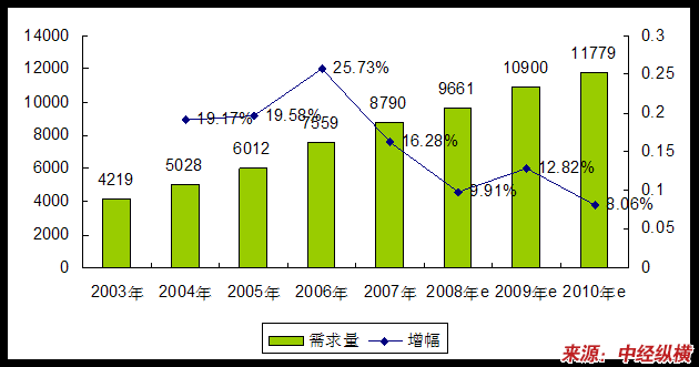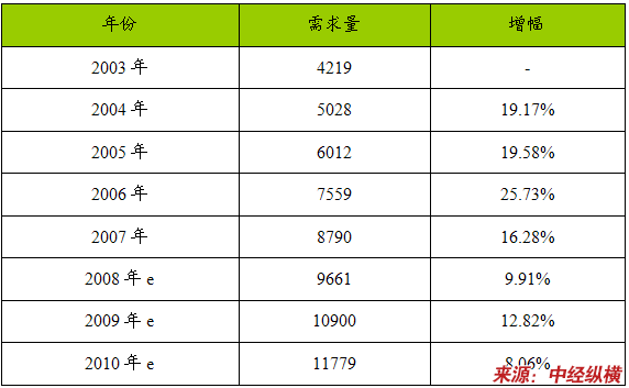 2003-2010年八氟戊醇(OFP)产品需求量 分析 及预测图