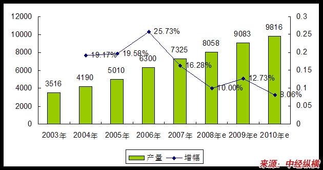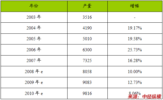 2003-2010年八氟戊醇(OFP)产品产量 分析 及预测表