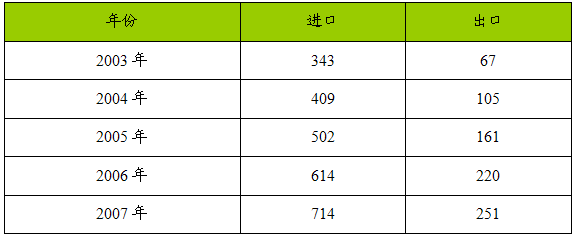 2003-2007年我国八氟戊醇(OFP)进出口量值