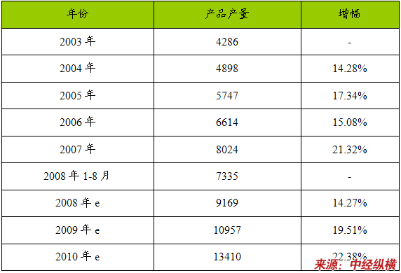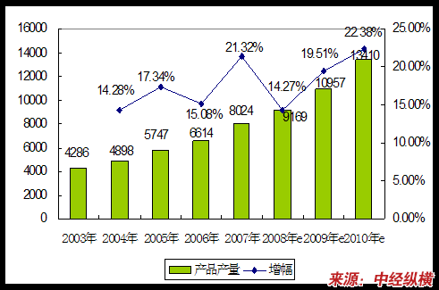 2003—2010年圆盘式热锯机产品产量 分析 及预测表