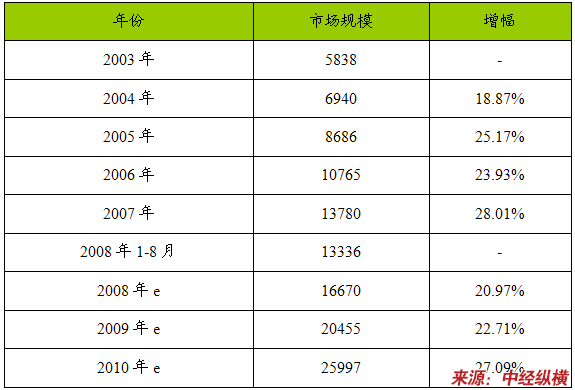 2003—2010年圆盘式热锯机产品市场规模及预测表