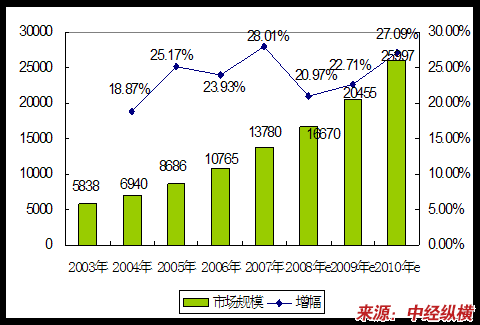 2003—2010年圆盘式热锯机产品市场规模及预测图