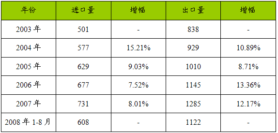国内圆盘式热锯机整体产量不高,且主要以中低端产品为主,因近些年国内大型钢铁公司生产过程中所需的高性能圆盘式热锯机大部分都是从国外进口。主要为日本、德国。而国内产品由于价格较低,近些年也逐渐出口到北美洲、中南美洲、亚洲、欧洲、非洲、大洋洲等地区。随着近几年国内圆盘式热锯机产品质量的逐步提高,国内企业开始加大对国内产品的需求,相应的进口增长幅度逐渐下降。