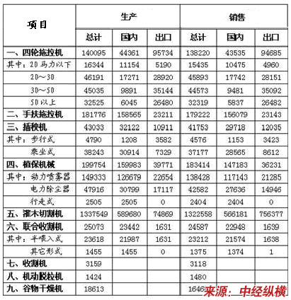 2009年日本农机产销统计表