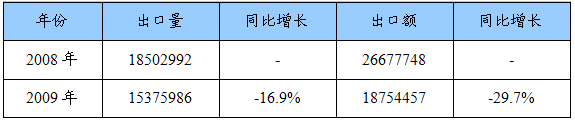 2005-2009年其他磷酸盐(HS:28352990)出口情况统计表
